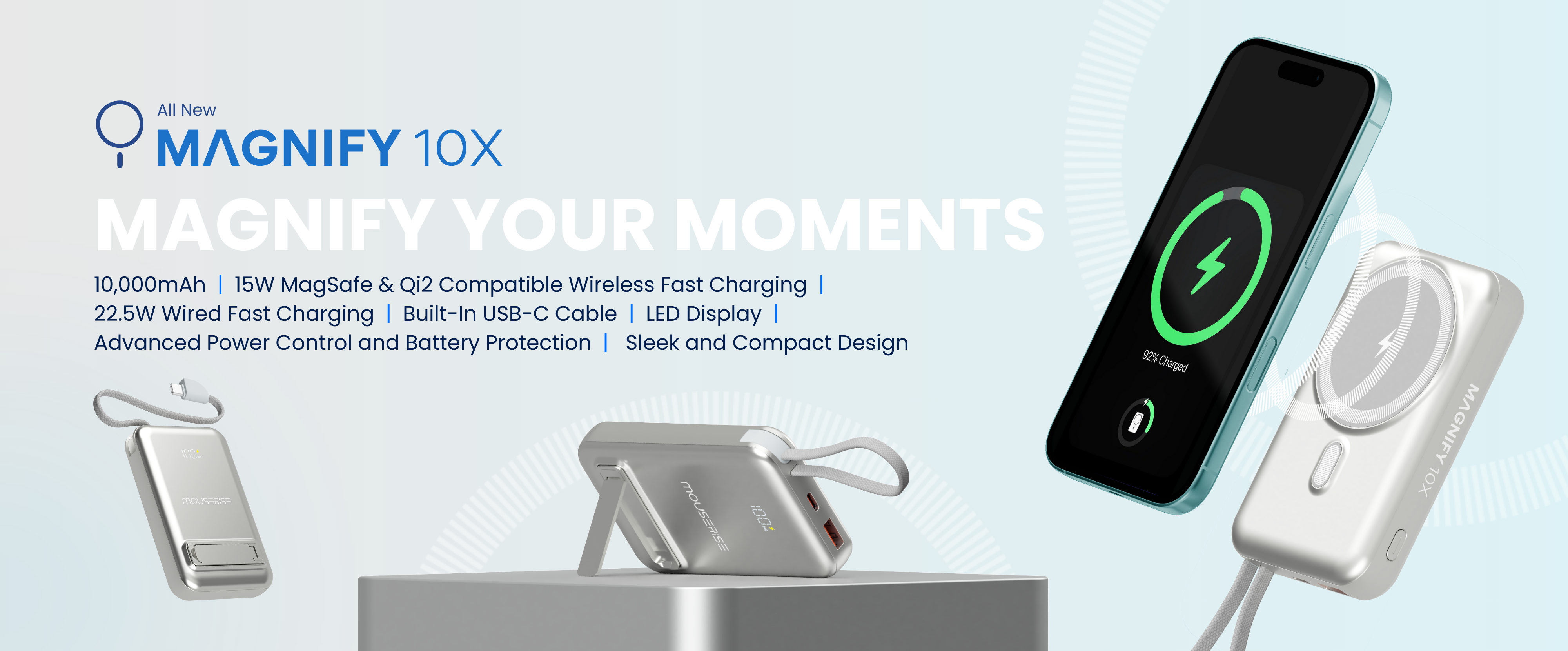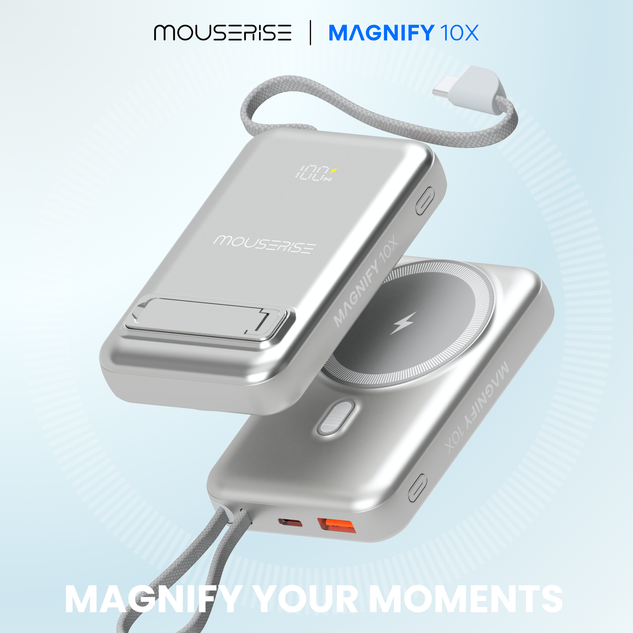 The Magnify 10X isn’t just a power bank, it’s a statement of speed, style, and freedom. With Wireless MagSafe precision and Qi 2 compatibility, blazing-fast wired charging, and a compact 10,000mAh powerhouse, it keeps your moments unstoppable. Designed to seamlessly blend luxury with performance, Magnify 10X ensures your moments are magnified.