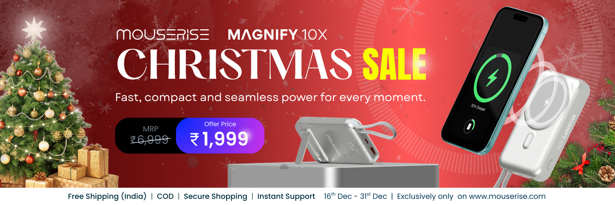 The Magnify 10X isn’t just a power bank, it’s a statement of speed, style, and freedom. With Wireless MagSafe precision and Qi 2 compatibility, blazing-fast wired charging, and a compact 10,000mAh powerhouse, it keeps your moments unstoppable. Designed to seamlessly blend luxury with performance, Magnify 10X ensures your moments are magnified.